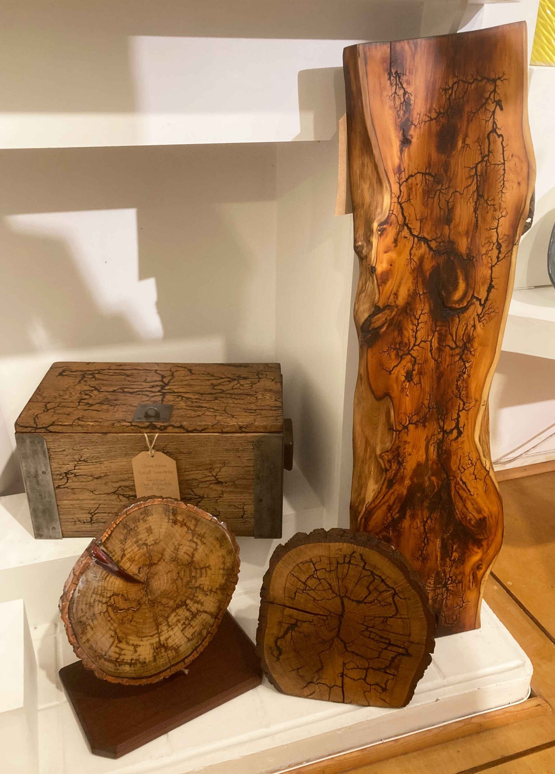 This is a burning technique that uses high voltage electrical current to create tree like patterns on wood - rather like lightening flashes. Each piece is a unique, intricate and beautiful work of art.
