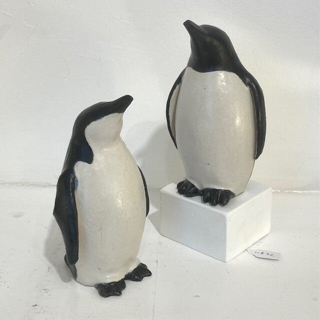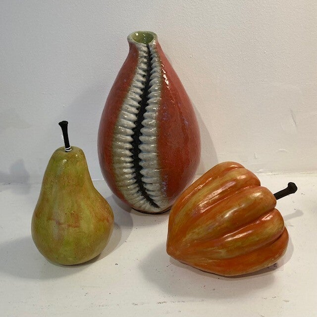 Dennis has been a sculptor for over 30 years, creating everything from simple stylised forms such as the gorgeous Barn Owl and Penguins above to amorphic pieces with experimental glazes, such as his lamps below.